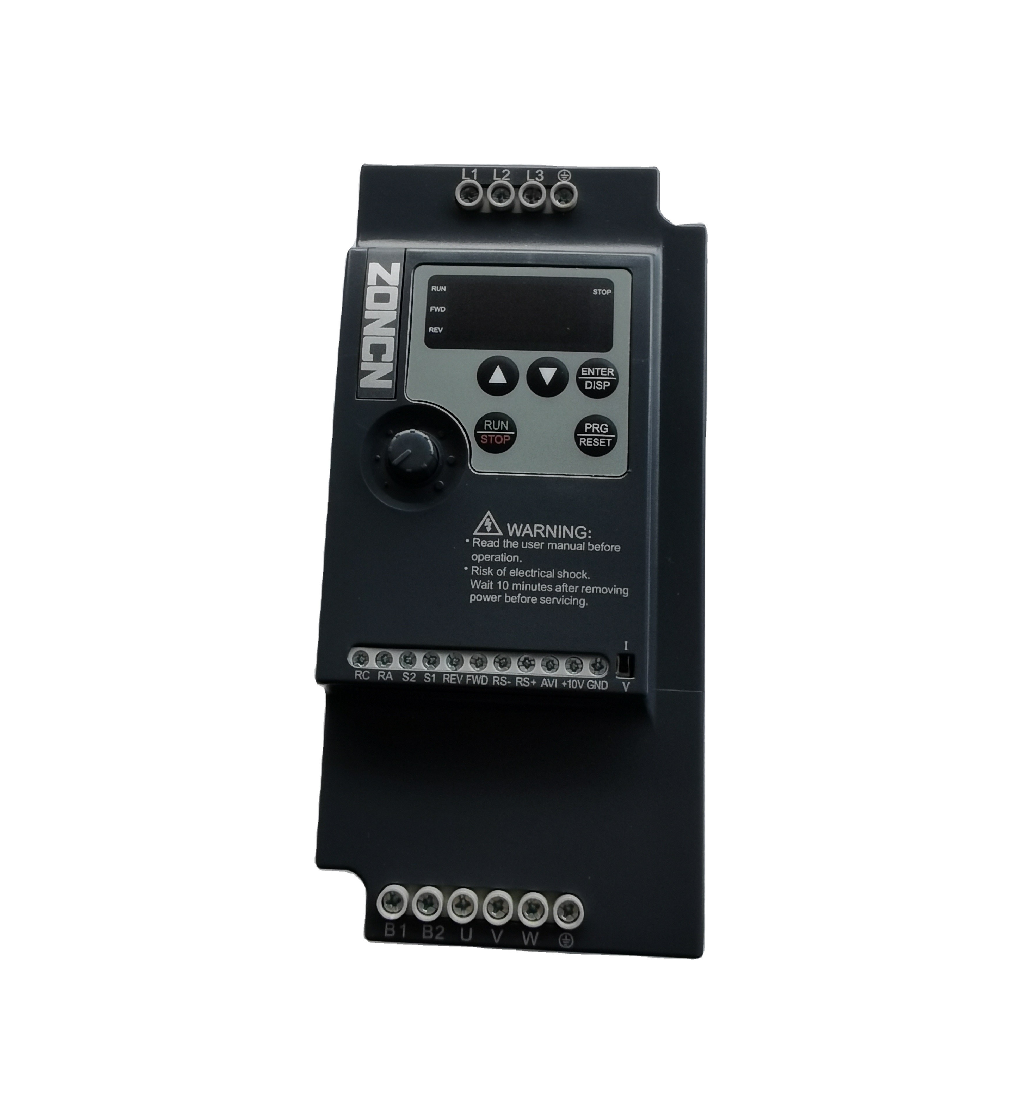 L'inverter VFD ZONCN è una soluzione compatta ed economica progettata per applicazioni con spazio limitato.Le sue piccole dimensioni e il prezzo accessibile rendono l'inverter VFD ideale per installazioni su piccola scala. Con il controllo V/F, l'inverter VFD regola in modo efficiente la velocità del motore, garantendo un risparmio energetico.che lo rende adatto a vari processi industriali.